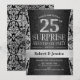 Invitation surprise pour une fête de 25e anniversaire de mariage en noir et argent.
