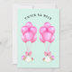 Cartes d'invitation créatives pour la fête de bébés jumelles avec des bouquets de ballons roses uniques et des nouveau-nées jumelles portant des casques.