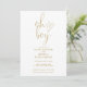 Cette élégante invitation de fête de bébé avec écriture dorée peut être personnalisée avec toutes vos informations de célébration spéciales et une photo spéciale au verso. Conçue par Thisisnotme©