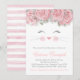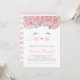 Invitation à la fête de bébé chat avec un adorable visage de chaton heureux aquarelle sur un fond rayé rose et blanc. Ces invitations pour fête de bébé chat sont facilement personnalisables pour votre événement en ajoutant simplement vos coordonnées.