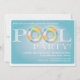 Deux tubes intérieurs rayés colorés flottant dans l'eau épelent l'invitation à une fête d'anniversaire "pool"! Dans des teintes amusantes d'été, orange, rose, turquoise et vert, ce design ne manquera pas de plaire !
