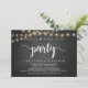 Magnifique fête de bonheur éternel, carte d'annonce / invitation de mariage en fuite amoureuse, avec un design de tableau noir de cottage rustique moderne, avec des guirlandes lumineuses. C'est parfait pour votre réception de mariage et votre fête de célébration post-mariage. Ajoutez vos détails dans la même police / lettrage.
