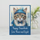 Célébrez la fête des lumières avec cette invitation unique et fantaisiste pour une fête de Hanoukka mettant en vedette un chat déguisé. Parfait pour les amoureux des chats, ce design allie humour et traditions de vacances, ce qui en fait une façon délicieuse d'envoyer la paix, l'amour et la lumière cette saison. Les teintes de sarcelle tendance, de turquoise et de bleu ajoutent une touche moderne à cette célébration intemporelle.