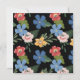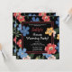 Invitation moderne, amusante et élégante de la fête du réchauffement de la maison avec un motif floral simple mais belle avec de magnifiques fleurs rouges, bleues roses et jaunes, complété avec des plantes vertes modernes, sur arrière - plan noir. Typographie moderne personnalisable pour la fête d'anniversaire détails de l'invitation Retour de l'invitation présente le même motif floral, également sur arrière - plan noir.
