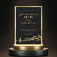 Une carte d'invitation glamour pour une fête de remise de diplômes. Pour lui et elle. Glamour à l'élégante et moderne arrière - plan noire et décoré de faux notes de musique dorée. Modèle pour le nom et les détails de la fête. Avec un cadre en faux or. Le texte Graduation et le nom sont écrits avec un script de style manuel moderne. Lettres d'or. Retour : arrière - plan noir avec notes de musique dorée.