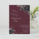 Ce design d'invitation à la fête de fiançailles à fleurs gothiques foncées est composé d'un arrière - plan bordeaux à tons de bijou soyeux, à l'aquarelle victorienne rétro, et d'ornements fleuris, décorés d'une police minimaliste moderne, offrant une présentation sophistiquée et fantaisiste pour un mariage gothique romantique ou autre occasion spéciale. Parfait pour un événement éffrayant d'halloween à l'automne ou un événement hivernal unique dans un cadre décontracté ou formel. Comme pour tous nos produits, s'il y a une demande spéciale concernant le design, n'hésitez pas à demander.