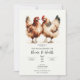 Invitation Fête de fiançailles rustique aquarelle poulets bru