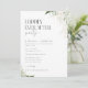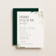 Invitation de fête de forêt sauvage après une fin heureuse avec une typographie de couleur noire sur fond blanc à l'avant et un dos de couleur vert émeraude coordonné.