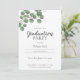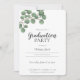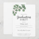 Belle et élégante invitation à la fête de remise de diplômes avec l'illustration d'une branche de feuilles ronds. Illustré et dessiné par Patricia Alvarez.