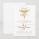 Célébrez votre réussite en style avec ce médecin moderne MD, invitation de remise de diplômes, avec un design élégant avec un caducée en or, et élégant script calligraphie initiales monogramme. Le design épuré apporte une touche de sophistication. Or et noir. Disponible en version imprimée, en téléchargement numérique ou les deux.