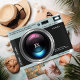 Invitation de la grande fête de la caméra rétros avec vos détails de l'événement, photo et logo.