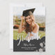 Calligraphie Photo Demande de Graduation avec place pour la photo de votre diplômé comme principale caractéristique de l'invitation. Le type de calligraphie par script indique le mot "diplômé".