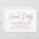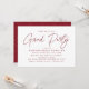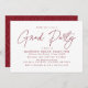 Invitations de la fête de remise des diplômes modernes et amusants avec "Grad Party" dans un script bourgogne branché avec les détails de votre fête de remise des diplômes affichés ci-dessous. L'invitation de la simple fête de graduation s'inverse pour montrer un mignon motif géométrique pointillé bordeaux et blanc.