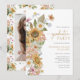 Faites une impression durable avec cette magnifique invitation à la fête de remise des diplômes, avec un bouquet latéral gracieux de fleurs sauvages rose et bleu poussiéreux peints à la main avec des tournesols jaunes rustiques. L'élégant script d'or ajoute chaleur et sophistication, tandis que le dos présente une photo grandeur nature encadrée par un motif d'aquarelle coordonné pour une finition polie. Cette invitation allie élégance boho et personnalisation chaleureuse, parfaite pour les fêtes du printemps et de l'été. Une façon intemporelle d'annoncer votre réussite, cette invitation vous assure que votre journée spéciale est à la fois élégante et mémorable - créez un moment à retenir!