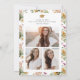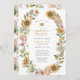 Invitation de la fête de graduation florale. Découvrez la beauté de votre cérémonie de remise des diplômes avec cette invitation charmante, avec une élégante couronne peinte à la main de fleurs sauvages roses et bleus poussiéreux avec des tournesols jaunes rustiques. Le délicat script d'or apporte une touche raffinée, alliant charme boho et sophistication. Le dos est doté d'un collage de 3 photos, vous permettant de mettre en valeur votre voyage avec vos clichés préférés, entouré d'un motif d'aquarelle coordonné pour un look cohésif. Annoncez votre journée spéciale avec élégance et grâce - faites-la aussi unique que vos réalisations!