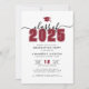 Une invitation à la remise des diplômes moderne et élégante avec "Class of 2025" en gros texte en gras en haut avec une icône personnalisable en haut de la page. Au-dessous de l'année, tous les détails de l'événement sont soigneusement affichés dans des polices modernes simples, y compris le nom du diplômé, la date, l'heure et l'emplacement de la célébration. Cette version est disponible dans un jeu de couleurs rouge, noir et blanc, qui peut aussi être considéré comme du marron ou du pourpre. Toutefois, chaque élément de couleur (y compris le casquette, les polices et les accents) peut être customisé pour correspondre aux couleurs de votre école ou aux tons préférés. Parfait pour inviter des proches à célébrer cette réalisation spéciale. Entièrement personnalisable pour correspondre à votre style.