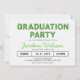 Invitation de la Graduation Party moderne avec le mot "Graduation Party" en vert contre un arrière - plan de bandes grises en diagonale. La carte comprend un côté verdoyant correspondant. Personnalisez-le en remplaçant le texte de l'espace réservé pour ajouter vos informations. Pour plus d'options, cliquez sur le bouton "Customiser". *Veuillez noter que le filigrane Zazzle qui apparaît dans l'aperçu du zoom n'apparaîtra PAS sur le produit imprimé final. © Bois de rose et agrumes