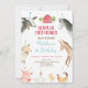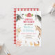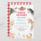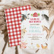 Cette adorable invitation présente des animaux de ferme avec des casquettes de fête et des confettis.