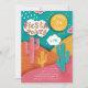 Fête d'anniversaire brillante avec tacos et tequila Invitation dans les couleurs bleu, jaune, rose, orange.