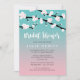 Invitation nuptiale ressort-orientée mignonne de douche comportant deux ou trois branches de cerisier complètement des fleurs sur un rose et un fond d'ombre de turquoise.