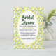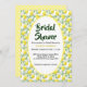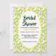 Invitez vos invités à votre douche nuptiale d'été d'amusement avec cette invitation de Fête de la mariée de citronnier avec le feuillage de citron d'aquarelle et un motif de pois sur le dos.