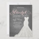 Envoyez à vos invités un invitation qu'ils n'oublieront pas ! Cette invitation chic et élégante de Fête de la mariée comporte un thème de robe de mariage. Pour une invitation bien plus mémorable choisissez une forme découpée avec des matrices, un papier texturisé ou un double papier épais.