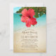 Invitations orientées de Fête de la mariée de plage hawaïenne tropicale de ketmie. Comportez une belle fleur rouge de ketmie sur une belle plage de palmier de noix de coco. Grandes invitations nuptiales nautiques de douche pour les parties côtières ou tropicales. Cette invitation nuptiale de douche est conçue par http://www.superdazzle.com