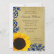 Une invitation nuptiale de douche de tournesol rustique. Comporter une texture brune vintage de toile de jute, des remous bleus de flourish et un tournesol jaune. Perfectionnez pour une douche nuptiale de pays, la douche nuptiale de tournesol, la douche nuptiale de grange et plus !