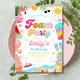 Faites un brin avec cette invitation à la fête en mousse brillante et mousseuse! Parfait pour un bain d'été, ce modèle modifiable présente des éléments tropicaux colorés comme un char flamand, des glaces, des ballons de plage et des bulles d'eau - idéal pour le 5ème anniversaire d'une fille ou toute fête ensoleillée. Personnalisez-le avec vos détails d'événement à l'aide d'outils d'édition faciles. Idéal pour les fêtes de billard, les soirées en mousse de jardin ou les anniversaires sur le thème de la plage !