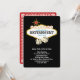 Texte de la fête de retraite à l'intérieur de l'enseigne d'accueil du marqueur Las Vegas, avec des dés et une carte de jeu au verso. Personnalisez cette conception en changeant le texte ou la couleur arrière - plan. Contactez le commerçant si vous avez besoin d'aide.