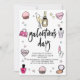Cette mignonne invitation à la fête de la Saint-Galentin présente un arrière - plan rose avec une bouteille de champagne et des lunettes, des articles de maquillage tels que rouge à lèvres, brosse, vernis à ongles et lotion et sac à main/sac à main, cupcake et étoiles. Au verso, on retrouve un arrière - plan rose avec des motifs d'étoiles aux couleurs pastel. Personnalisez-vous pour répondre à vos besoins. Vous pouvez trouver d'autres produits correspondants dans mon magasin.