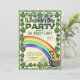 Invitation à la fête de la Saint-Patrick avec un arc-en-ciel, une casserole d'or et beaucoup de quatre trèfles à feuilles.