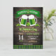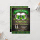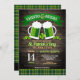Amusants "cheers and beers" St. Patarick's Day invitations de fête avec un arrière - plan de grains de bois foncé, tartan vert et orange, 4 trèfle de feuilles, amusant, polices de fantaisie et deux steins de bière verte torréfier