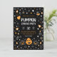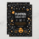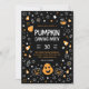 invitation fantaisiste citrouille de sculpture sur un arrière - plan sombre avec un texte personnalisable facile avec votre propre libellé. Annoncez votre halloween citrouille de sculpture avec cette invitation moderne et amusante avec des citrouilles, potions, bonbons et des éléments de gribouillis céleste combinant des couleurs orange, noir et blanc. Découvrez l'ensemble pour un décor de fête assorti pour célébrer la chute de style. Conception par @rodicadraws.