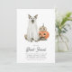 Héberger un adulte seulement Halloween bash? Des amis Invitations avec ces invitations charmantes et amusantes avec un chien en costume de fantôme, flanqué de citrouilles de jack-o-lanterne à l'aquarelle. "Mettons-nous en face" apparaît en dessous, avec les détails de votre fête d'Halloween.