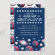 Stars and Stripes a inspiré l'invitation à une fête de barbecue pour la fête de l'Indépendance avec des illustrations de balles de foot, de balles de baseball et de balles de basket.