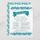 Commencez votre douche nuptiale avec notre invitation moderne à la douche nuptiale parapluie. Notre douche élégante et branchée d'amour et de voeux de voeux de succès comporte une rangée de parapluie bleu paon avec une bannière contemporaine posée sur un arrière - plan blanc immaculé. Retourner l'invitation pour trouver un défilement correspondant pour une touche spéciale supplémentaire.