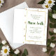Le mélange parfait de féminin et de moderne se trouve dans cette invitation à fleurs sauvages avec cadre doré. De petites fleurs sauvages délicates comme des marguerites entourent un cadre doré pour un look fantaisiste et vintage qui le rend parfait pour votre prochain événement. Les cadres dorés créent la bordure parfaite pour le texte cursif et traditionnel de couleur vert lierre. Le résultat final est un look mignon et printanier qui convient parfaitement à ceux qui recherchent la sensation fraîche et ensoleillée du printemps capturée dans une invitation. Cette invitation est indispensable pour votre prochaine baby shower, douche de mariée ou enterrement de vie de jeune fille !