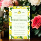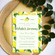 Apportez la lumière du soleil à votre prochain événement avec cette invitation de douche aux citrons amusante et gaie ! Avec un fond de citrons et de verdure accompagné d'une combinaison de texte moderne et cursif, cette invitation aux couleurs vives est parfaite pour votre prochaine baby shower, douche de mariage ou douche de mariée ! Cette invitation au citron est parfaite pour des éléments uniques, sophistiqués et vintage avec ses citrons aquarelle et sa combinaison de texte qui en font l'ajout parfait pour votre prochain événement !