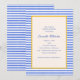 Cette invitation de douche de mariée rayée bleu et blanc présente un design côtier classique avec un accent de bordure jaune vif. La mise en page épurée associe un style nautique prépa à une atmosphère intemporelle de maison de plage, ce qui la rend parfaite pour une célébration estivale de douche de mariée. Conçue pour les rassemblements côtiers et les événements élégants mais décontractés, cette invitation rayée apporte une couleur fraîche et un charme classique à vos détails de douche. Personnalisez avec vos informations d'événement pour un faire-part soigné et mémorable.