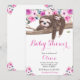 Invitez vos amis à célébrer l'arrivée du nouveau-né avec une fête de bébé paresseux ! Cette invitation adorable présente une douce maman et un bébé paresseux somnolant sur une branche d'arbre. Avec des nuances douces de rose et de bleu, ce design aquarelle est parfait pour une fête de naissance de fille, et vous pouvez personnaliser le texte pour l'adapter à votre occasion.