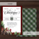 Invitation annuelle de Noël. Noël est un élément de conception de script et le cadre de date et les lignes ont la même couleur que le vert clair de l'arrière En vichy motif. Un cadre rouge bordeaux profond et une aquarelle décorée de baies sèches, de verdure et de cônes de pin dans le coin inférieur. Le dos a un motif en vichy vert. Gardez vivante votre tradition de fête annuelle et impressionnez avec ces éléments. Voir les autres produits correspondants de cette collection pour un thème cohésif.