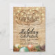 Fête de Noël / Fête des fêtes Cartes d'invitation - Rustic Carved Wood Text, Christmas Ball, lampes à cordes, Pine Tree Branch et Snowflakes.