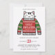 Ce pull moche Modern Cat Dessin Noël Invitation présente un adorable chat arborant fièrement un pull moche délicieusement kitsch, capturant l'esprit fantaisiste de la saison des fêtes. Le design moderne déborde de couleurs vives et de détails ludiques qui mettent en valeur la charmante personnalité du chat, en faisant le point central de l'invitation. Avec son délicieux mélange de joie festive et de plaisir félin, cette invitation est parfaite pour inviter les invités à une fête cosy et décalée où chacun peut embrasser la joie des pull moches et célébrer les fêtes ensemble!