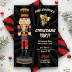 Éblouissez vos invités avec cet élégant invitation de fête de Noël avec un mignon casse-noix avec une typographie vibrante contre un arrière - plan de starburst noir. Ajoutez simplement les détails de votre événement sur ce modèle facile à utiliser pour en faire une invitation unique. Retournez la carte pour révéler un motif de démarrage rouge et noir au dos de la carte.