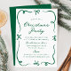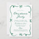Bienvenue amis et famille à votre réunion de vacances avec cette invitation fantastique à la fête de Noël. Le design présente "Christmas Party" dans une écriture manuscrite festive, avec les détails de votre événement disposés ci-dessous en lettres serif classiques. Des arcs et des rubans verts dessinés à la main encadrent le texte sur un arrière - plan blanc, donnant à l'invitation un look frais et festif. Un choix idéal pour les fêtes de Noël, les dîners saisonniers ou les fêtes d'entreprise.