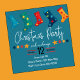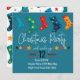 L'invitation à Noël Party Sock Exchange comporte cinq chaussettes différentes accrochées au sommet de la carte en bleu vif et capricieux, vert, rouge et orange- chacune confectionnée avec un motif d'étoiles de vacances. Les chaussettes sont menottées au sommet. Reverse card est un motif sans faille de chaussettes de vacances en couleurs vives et dispose d'étoiles soigneusement placées pour améliorer ce design de vacances. Le jour, la date et le mois de la fête sont entièrement personnalisables avec l'heure de la fête, le nom de l'hôte et l'emplacement de la fête, ainsi que les instructions et informations RSVP.