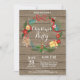 Invitation Noël Fête de Fêtes. Dîner de Noël Invitation de fête de Noël. Fleurs florales de Noël couronne. Arrière - plan rustique en bois. Country Vintage Retro. Pour plus de personnalisation, cliquez sur le bouton "Customiser" et utilisez notre outil de conception pour modifier ce modèle.