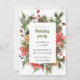 Découvrez une élégante invitation de fête de vacances ornée de branches de pin aquarelle, de poinsettias et d'éléments festifs. Ce charmant invitation présente les détails de l'événement pour une réunion du 23 décembre à 21h00, avec des informations sur le lieu et des instructions RSVP pour une joyeuse fête saisonnière.