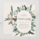 Courbe florale d'hiver avec une combinaison de fleurs crème douce et de feuillage de pin couplée avec des étoiles de feuille d'or et des flocons de neige. Associez ces magnifiques illustrations à votre propre photo et script pour une extraordinaire invitation à la fête de Noël.